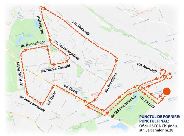 От офиса SCCA в Кишинёве, по адресу str. Salcâmilor 28, двигайтесь по str. Salcâmilor до пересечения с str. Pădurii